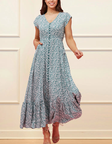 3.Evening Look: Elevate your evening style with a meticulously chosen maxi dress and exquisite accessories. For that special occasion or formal event, opt for a maxi dress that boasts refined details like gathering effects at the waistline, self-covered buttons, cutouts, or embroidery. Take the opportunity to make a statement by selecting bold colors such as striking red, emerald green, or captivating multicolor patterns. To polish up your glamorous look, pair your dress with sultry high heels, a sophisticated clutch, and bold sparkling jewelry. Complete the ensemble with an elegant updo and a touch of makeup, and you'll exude confidence and elegance throughout the night, leaving a lasting impression on everyone you meet.