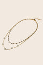 Refined and contemporary, this double chain necklace features soft grey beads paired with a fine gold-tone chain accented by subtle details. Its balanced design adds depth and elegance to the neckline while remaining light and effortless.