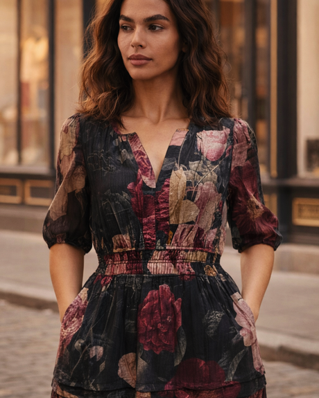 Regular price $79.95Unit priceUnavailableAgnes Black Floral Tiered Dress