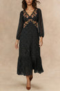 Jessica Embroidered V-Neck Long Sleeve Dress