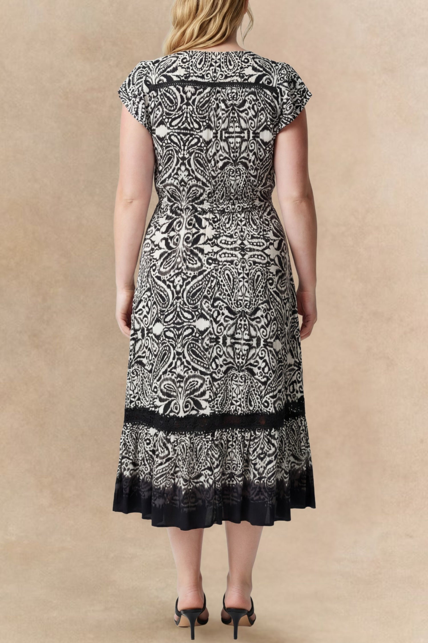 Kayla Boho V-Neck Midi Dress - Black / S is backordered and will ship as soon as it is back in stock.