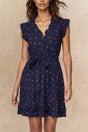 Natasha Cherry Print Short Dress - Navy / XS is backordered and will ship as soon as it is back in stock.