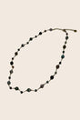 Elegant and organic, this long necklace features a fine gold-tone chain adorned with natural stones in soft green, earthy and mineral tones. Each bead brings its own unique texture, creating a calm, authentic feel.
