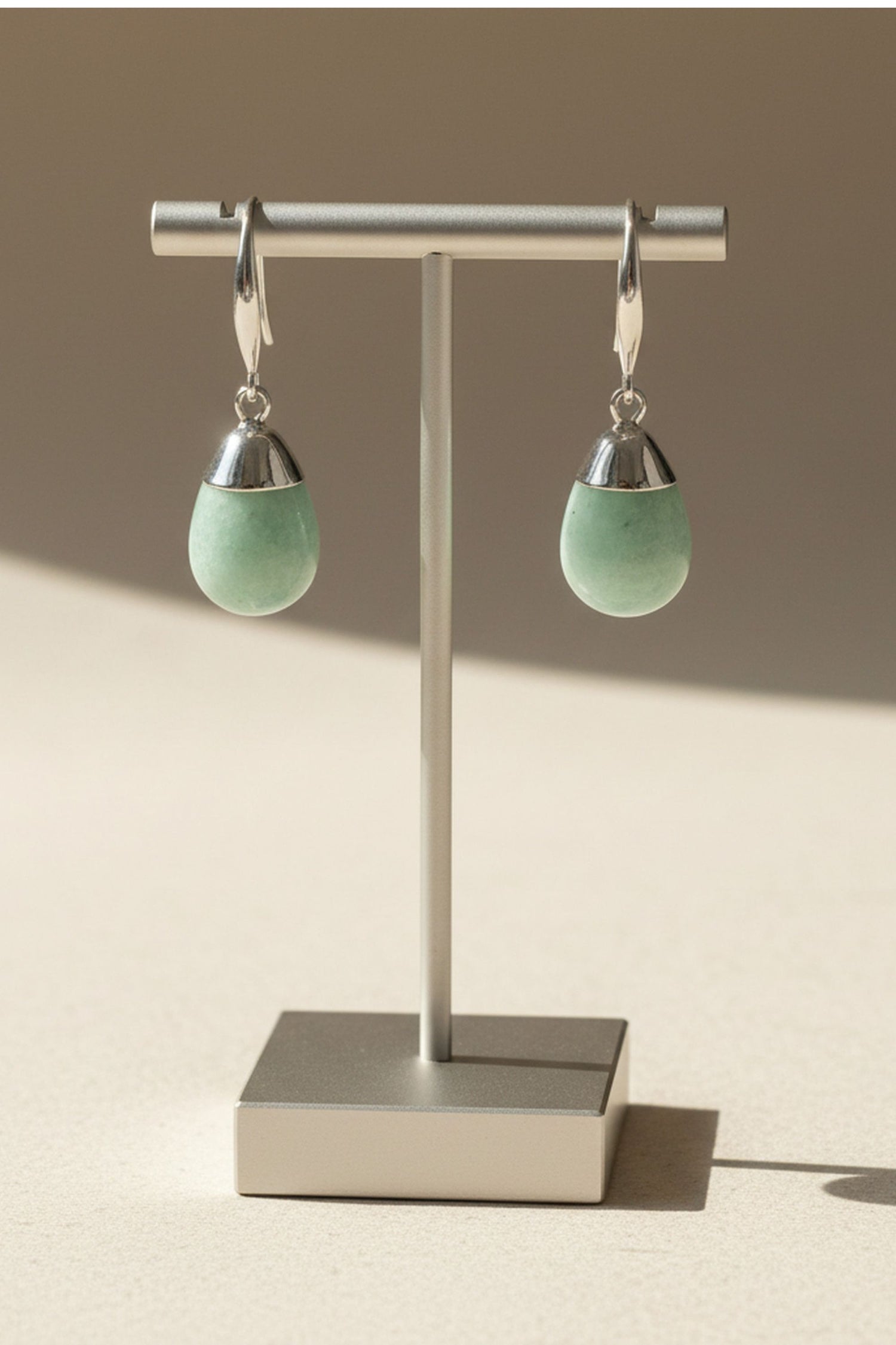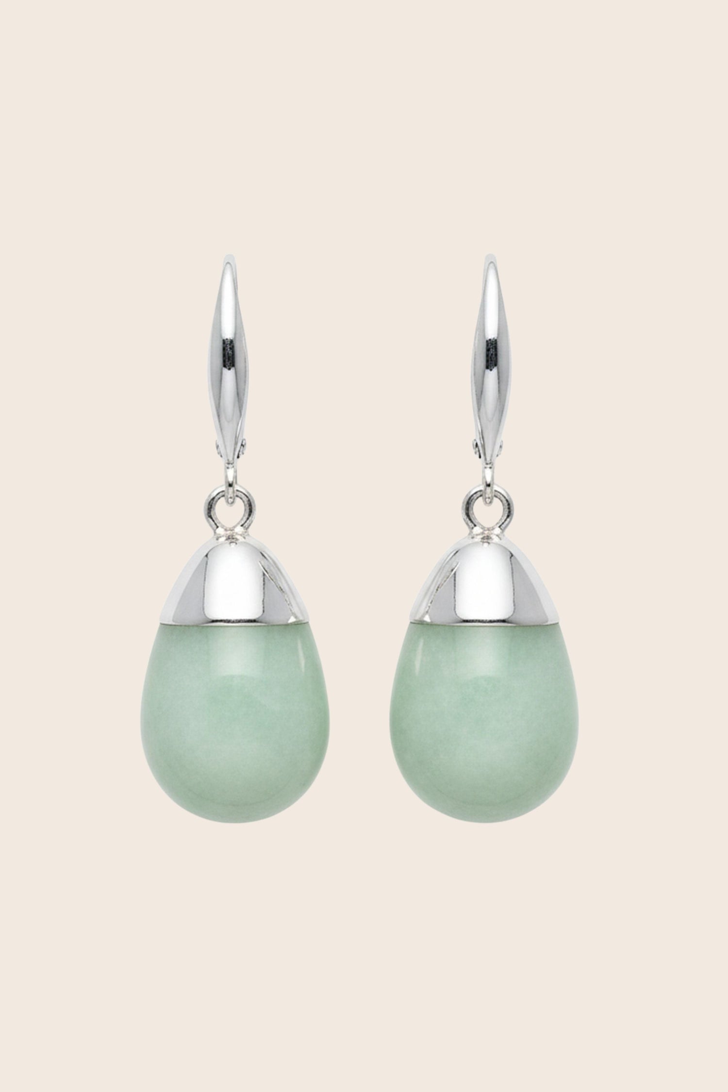 These drop-shaped earrings bring a fresh and elegant touch to any outfit. Featuring a smooth, luminous sage green stone paired with a polished silver-tone setting, they strike the perfect balance between softness and modern style.