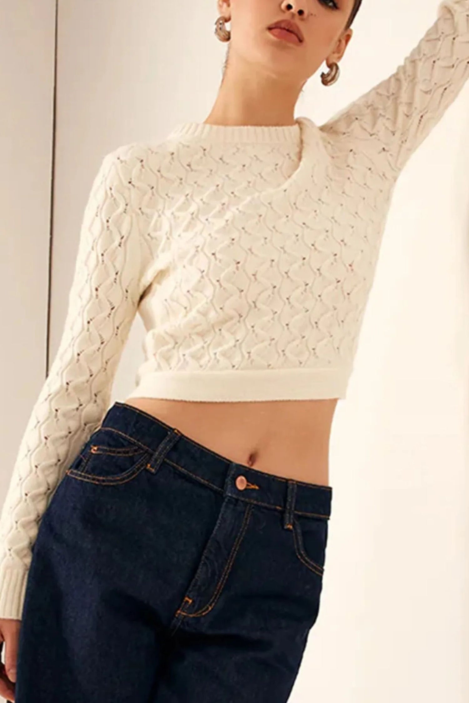 Olivia Cutout Bow Back Texture Round Neck Sweater