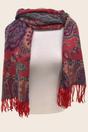 Elevate your look with our stylish paisley red scarf, crafted from soft, warm fabric for ultimate comfort and finished with a chic fringed trim – the perfect cozy accessory for any outfit