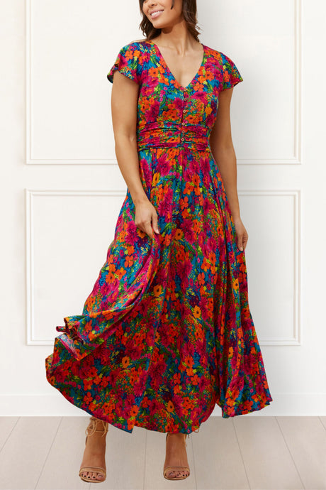 Alexandra Floral Halter Midi Dress – Black Rose Print
