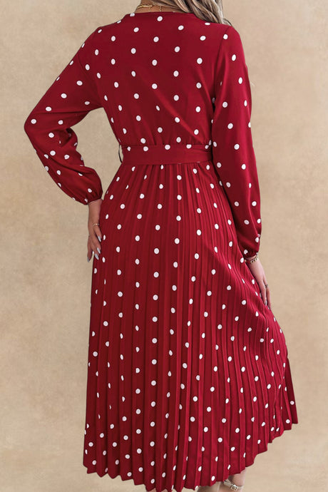 Lydia Robe Midi Plissée à Pois Nouer ...
