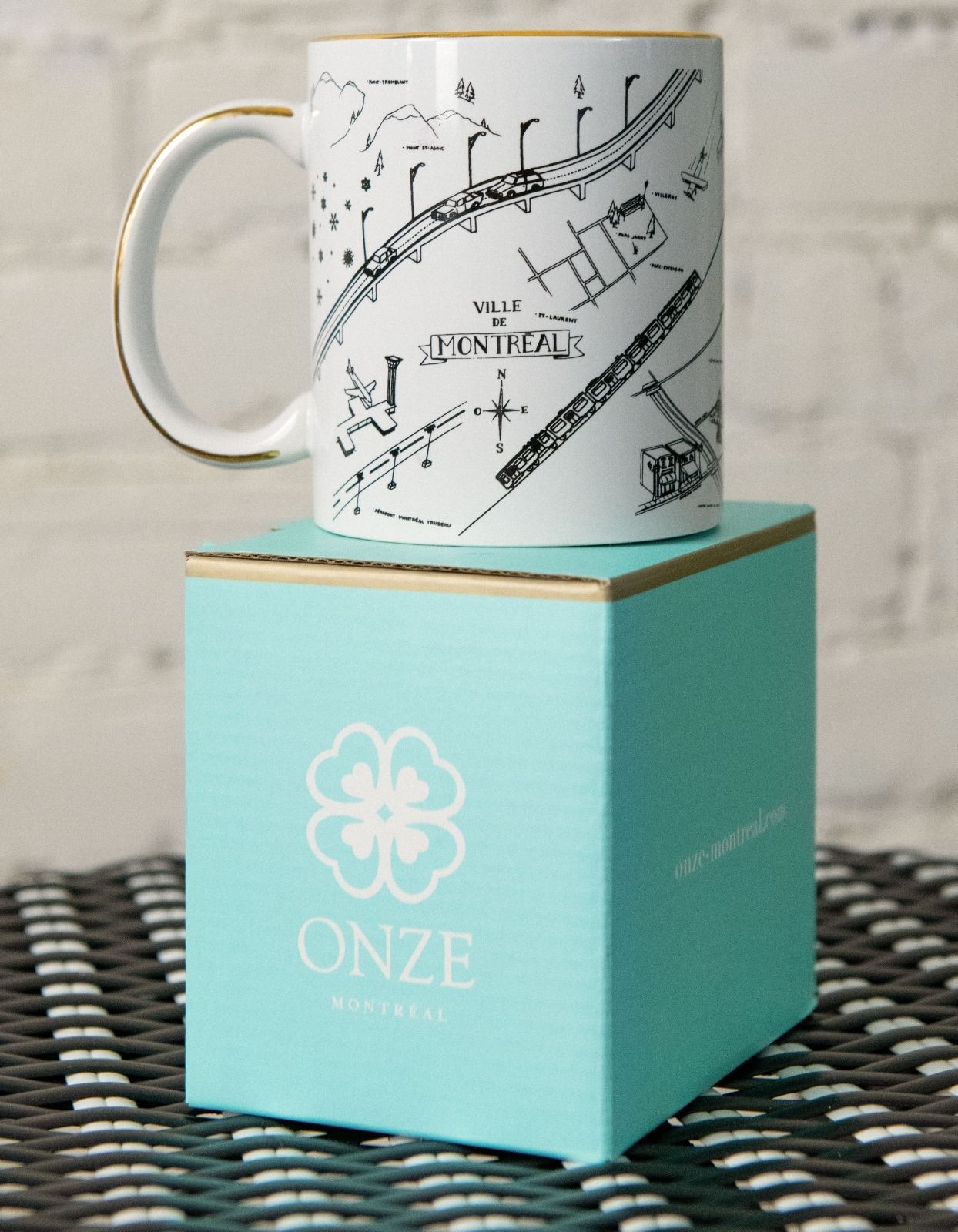 Cette tasse Touche d'Or14K Carte Montréal vous fera rêver de notre belle ville tous les matins grâce à son iIllustration d'art personnalisée avec une carte artistique de Montréal. Un cadeau parfait pour offrir ou à garder chez soi. En grès ivoire avec une touche d'or 14 carats. Une fois que vous en aurez une entre les mains, vous voudrez un set complet :)