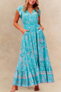 PRÉVENTE | Robe maxi Lizette imprimé floral turquoise boutonnée