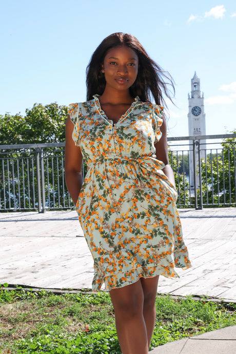 Prix habituel $89.95Prix unitaireIndisponibleRobe verte fleurie Fleur coupe évasée
