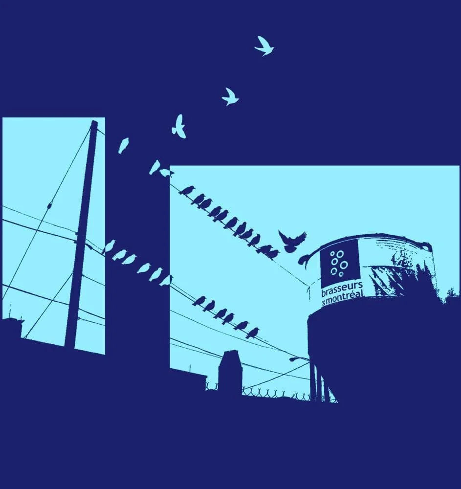 Micro-brasserie située dans un ancien quartier industriel en bordure du canal Lachine. Vue prise à partir du sol, éventuellement en position couchée.