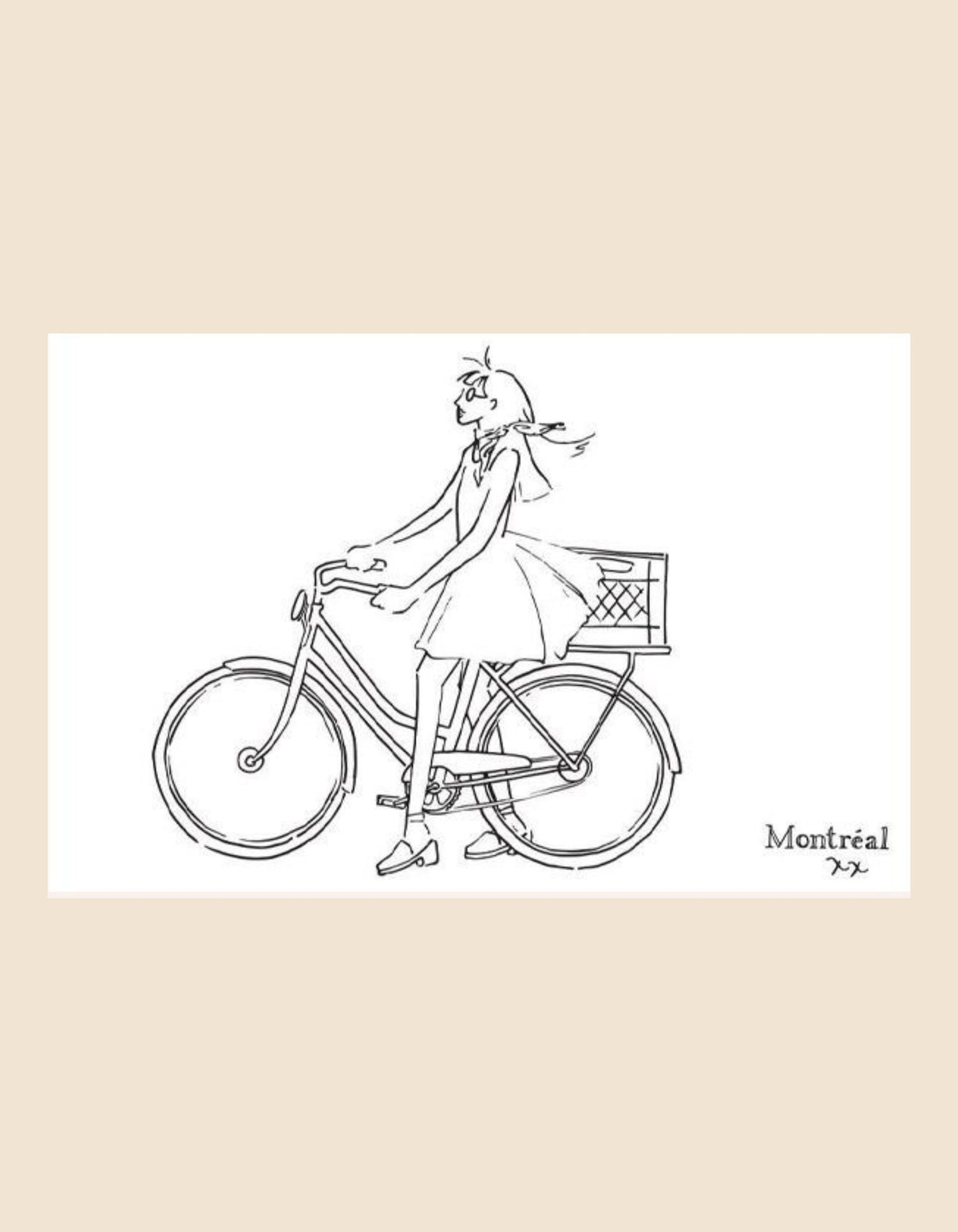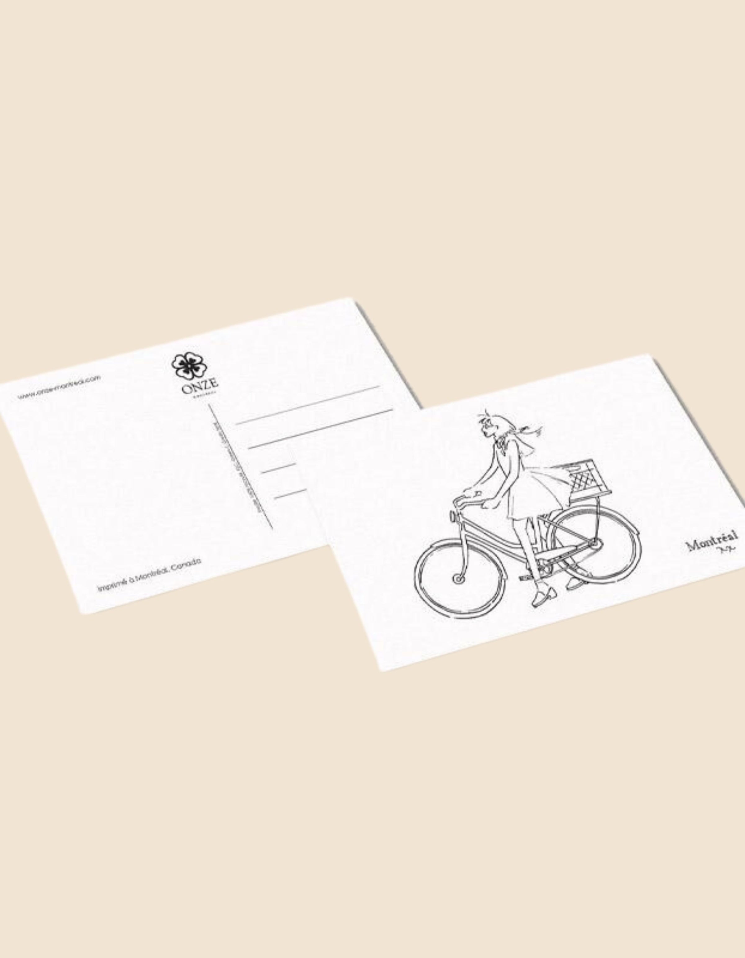 Faites plaisir à vos proches en leur écrivant un mot doux sur la carte postale Fille à Vélo Montréal comme dans le bon vieux temps...