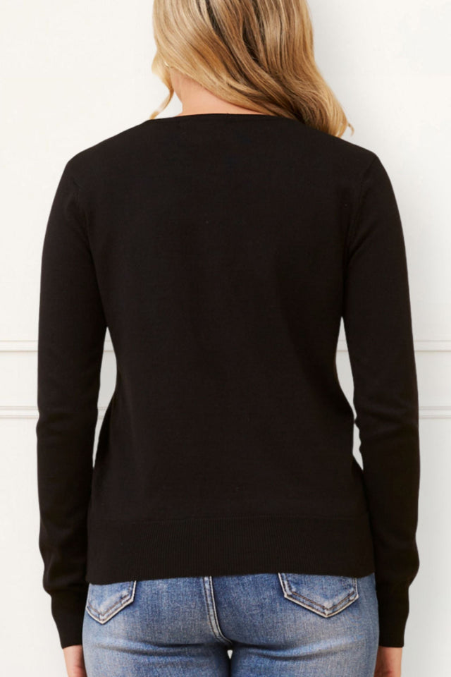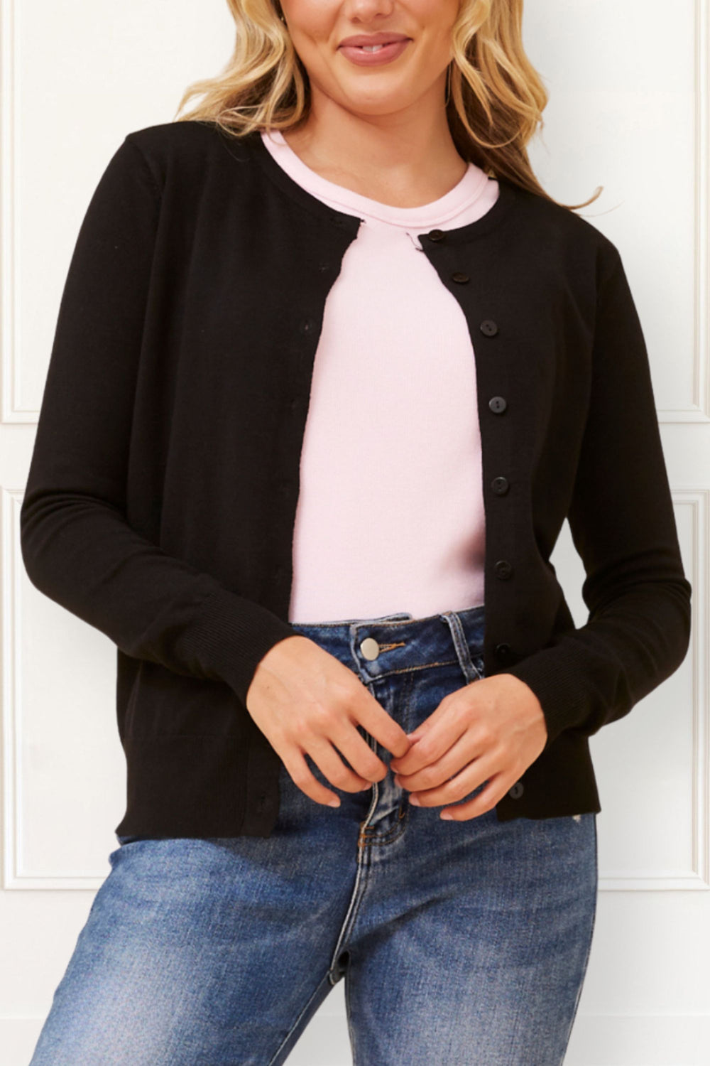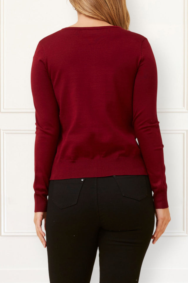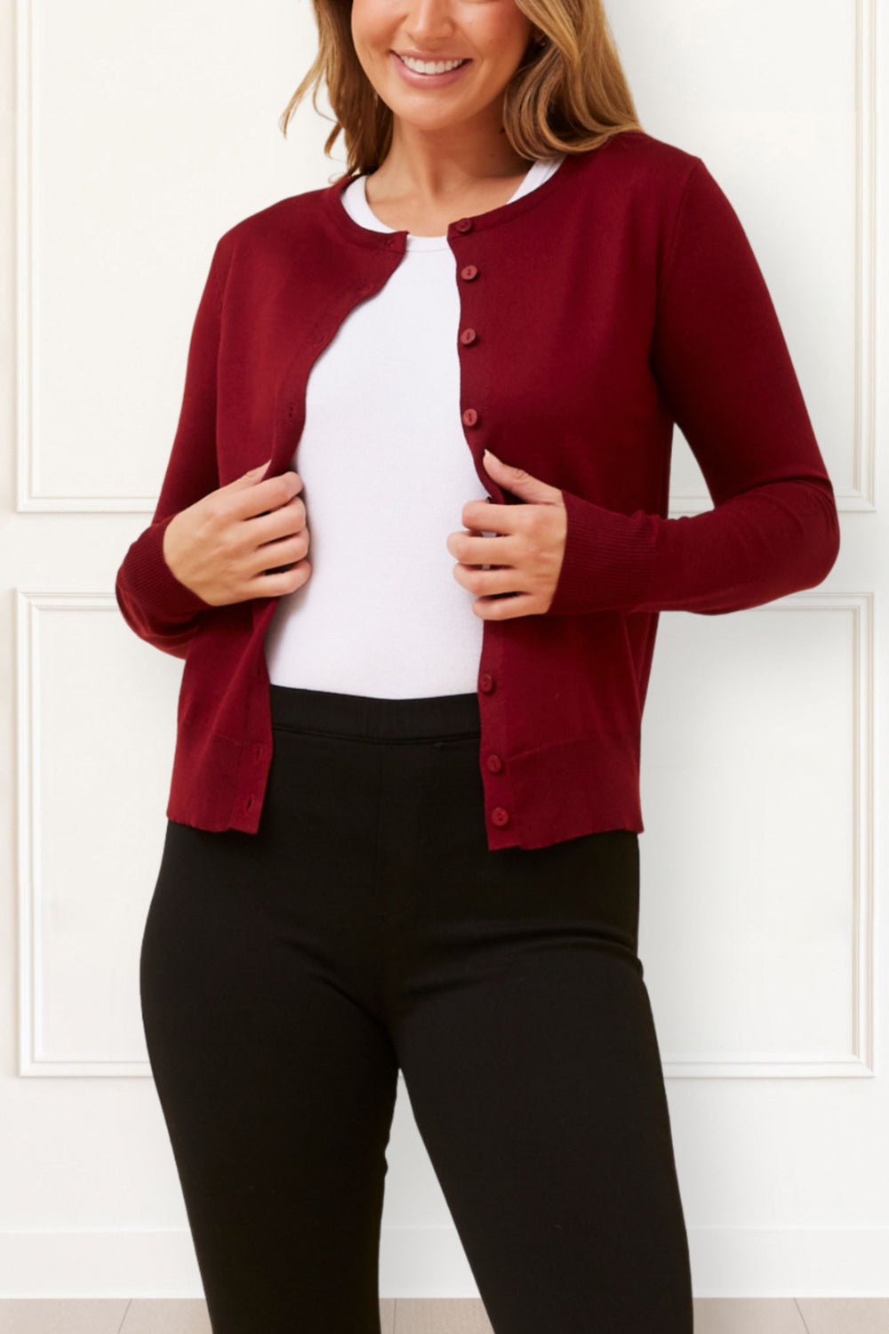 Disponible en noir classique ou en bourgogne profond, il convient parfaitement avec une robe, des jeans, jupe ou un pantalon. Avec ses manches longues, c’est le compagnon idéal de la mi-saison — et un essentiel tout au long de l’année.