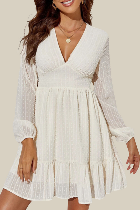Emilie Plus Size Embroidered Notched Balloon Sleeve Mini Dress