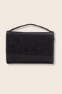 - Exterior: a front slip pocket under the flap and a slip pocket with magnetic closure at the back